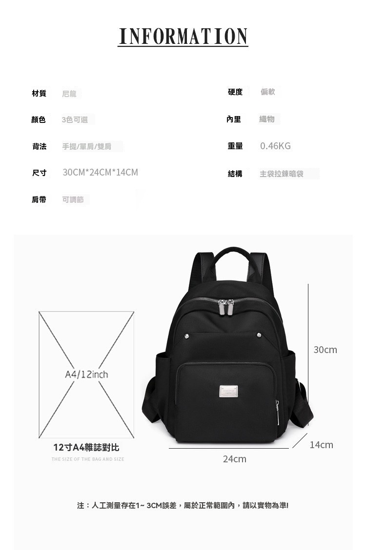 尼龍防潑水 輕便雙肩包 原宿風 602