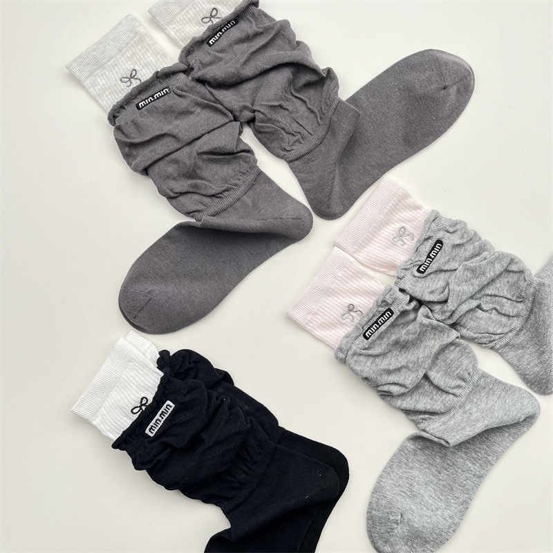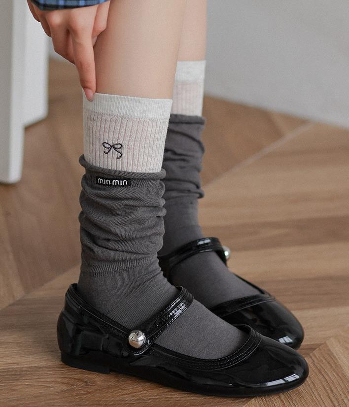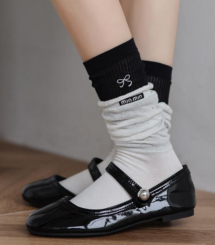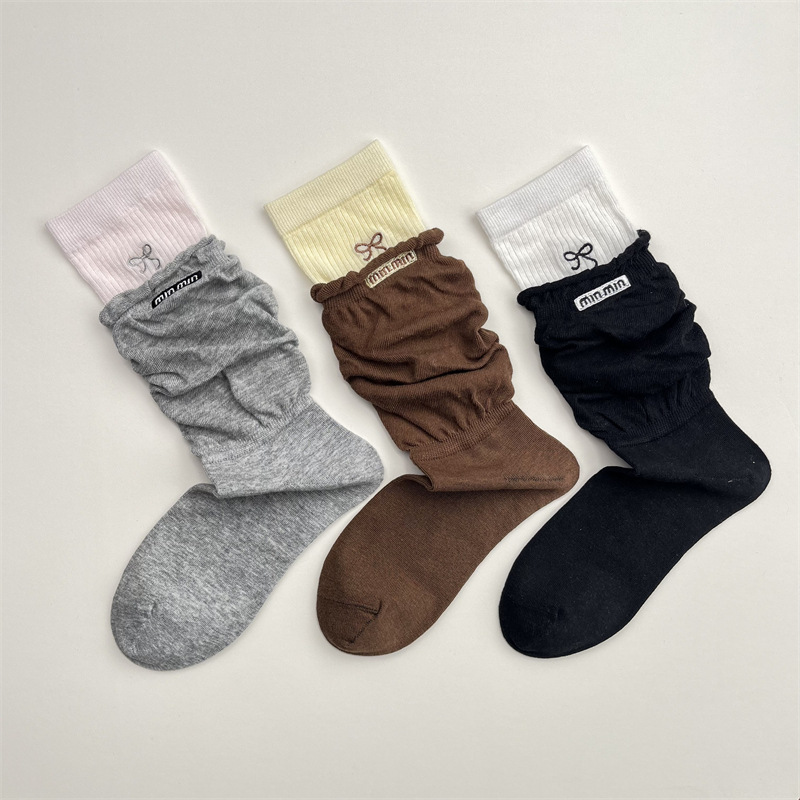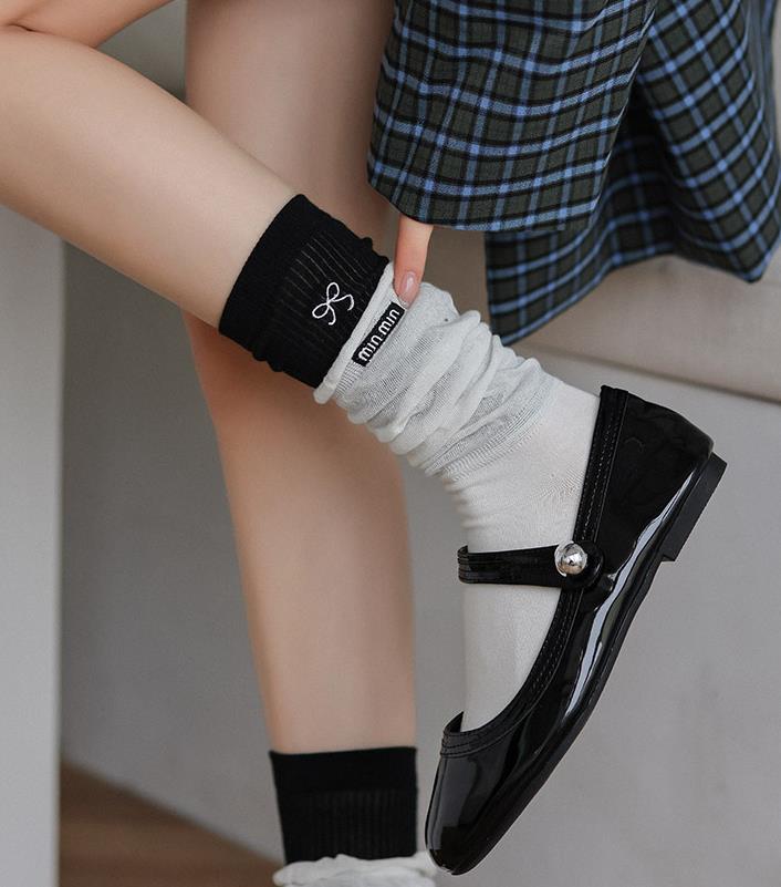 絲帶蝴蝶結 中筒堆堆棉襪 夏薄款透氣吸汗防臭無骨襪 62