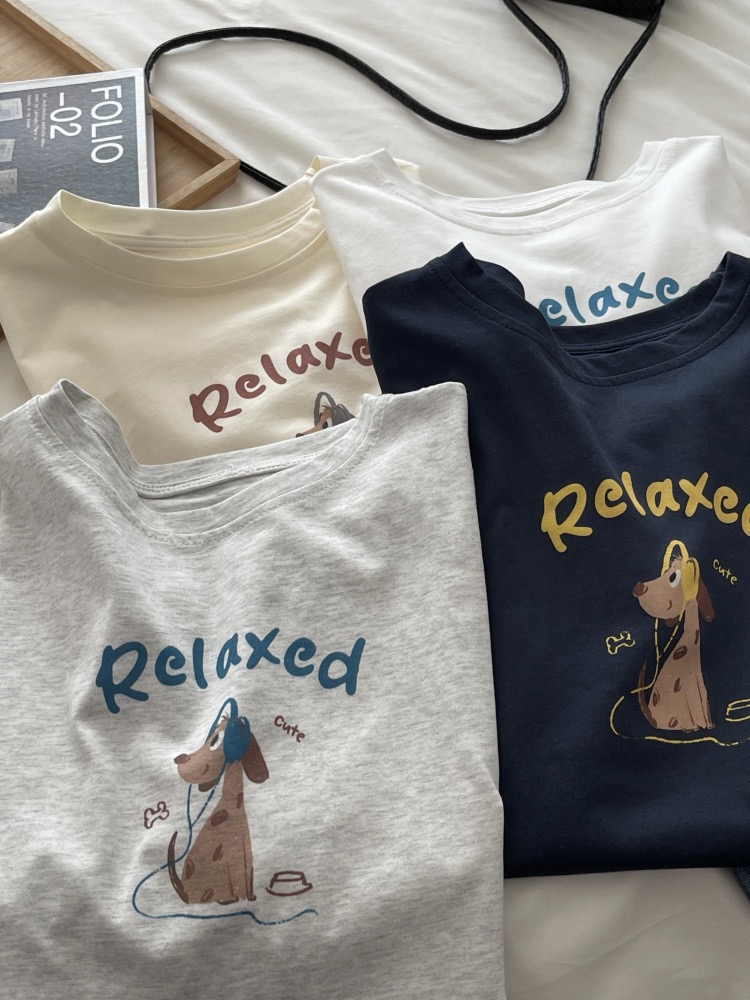 (春秋款)圓領正肩短袖 小狗磨毛T恤 714