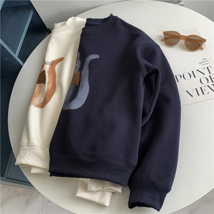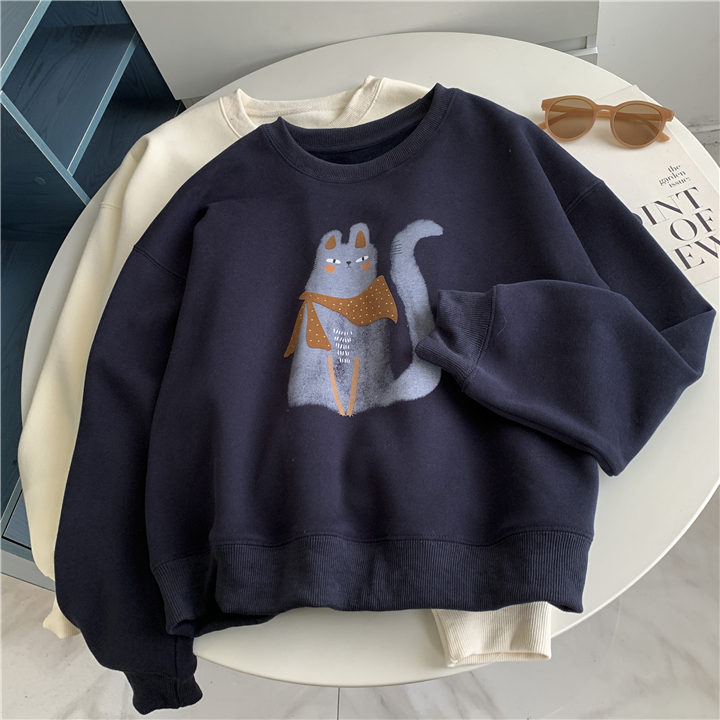 韓版貓咪印花 加絨長袖保暖 顯瘦上衣 n309