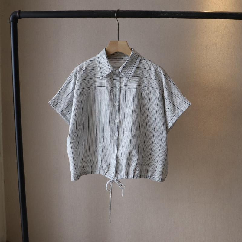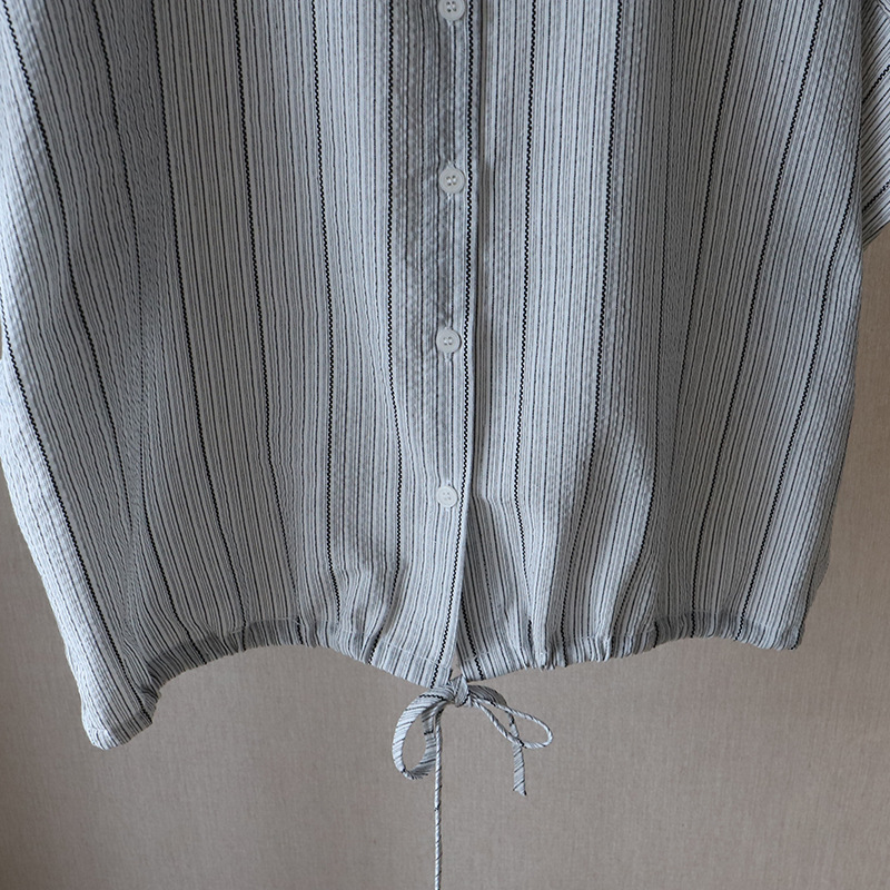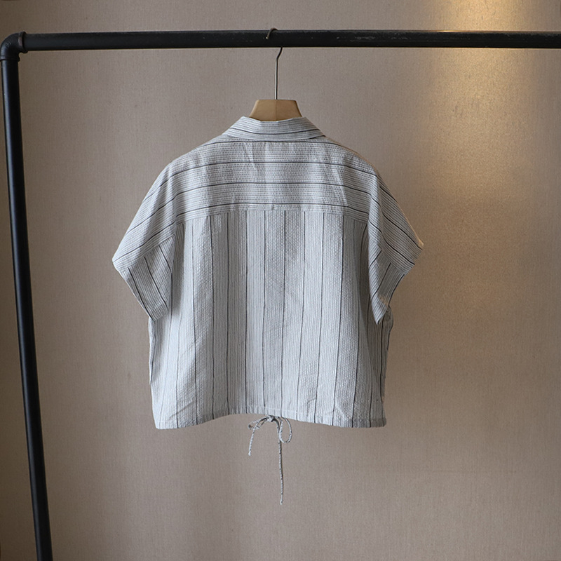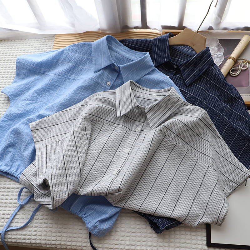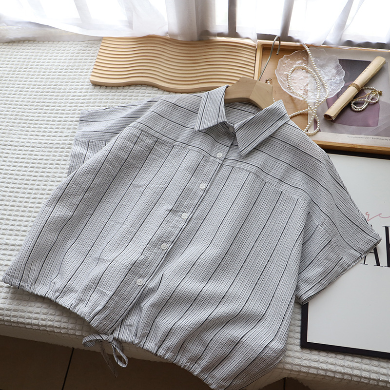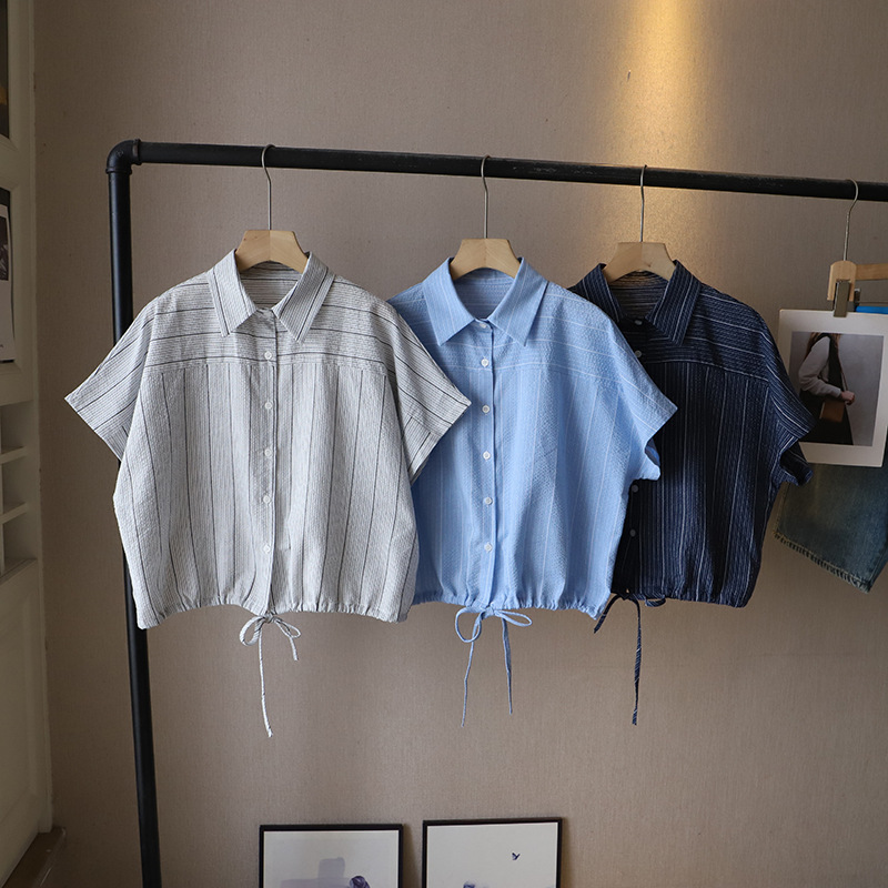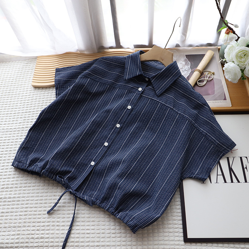 韓版POLO領復古條紋 休閒抽繩短袖襯衫 702