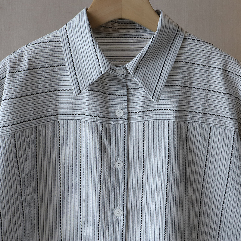 韓國復古氣質V領 輕薄棉質七分袖襯衫 730