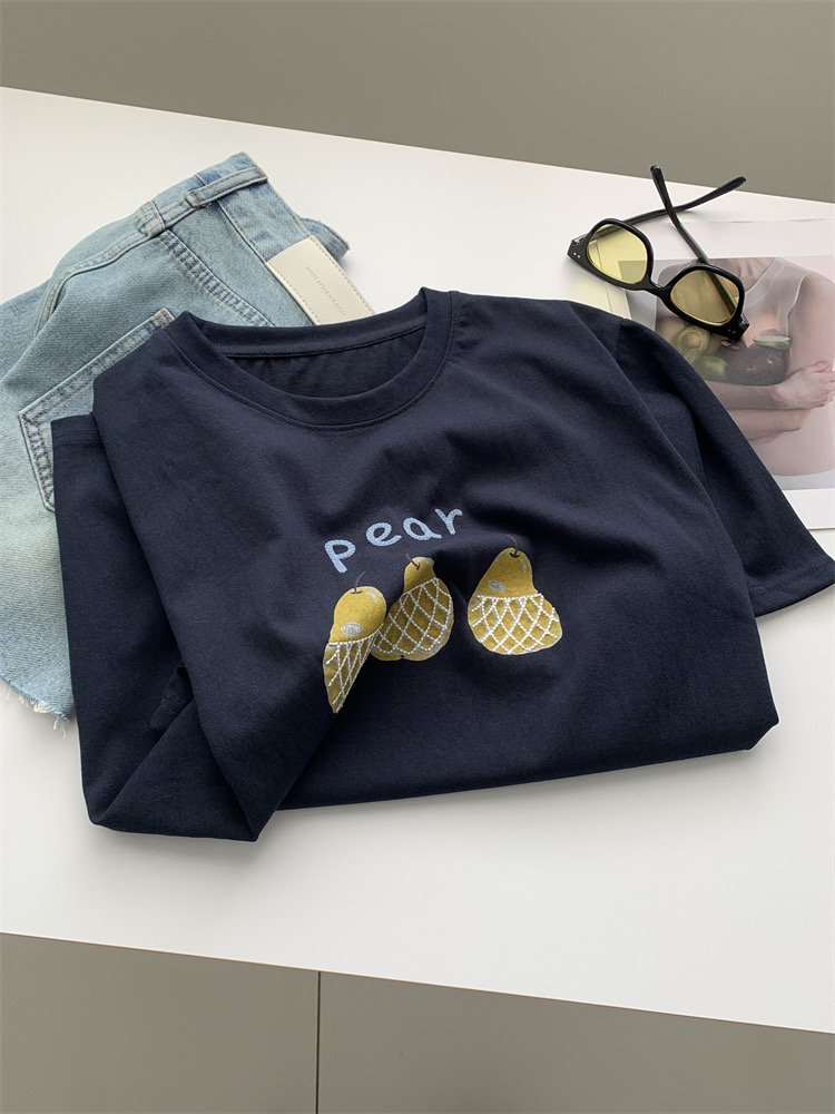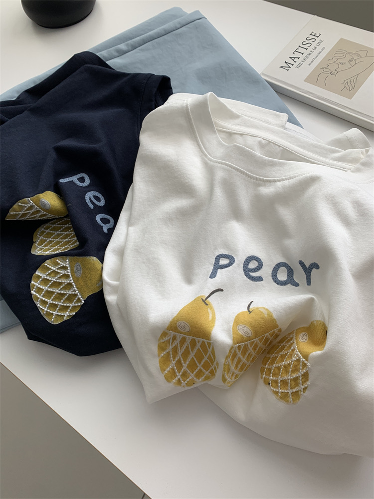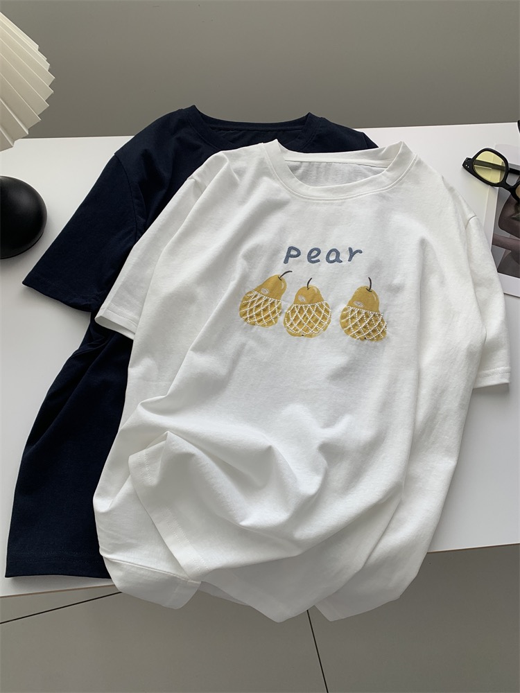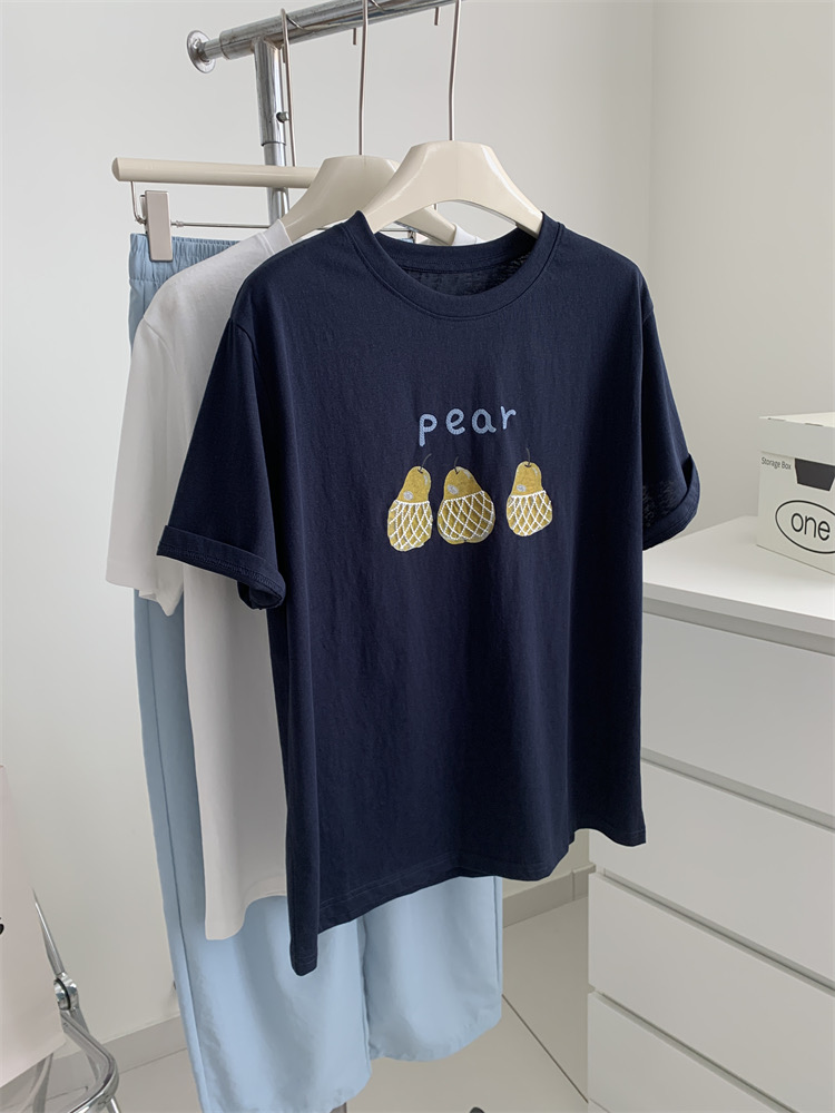 夏日韓系水果印花 慵懶垂感圓領短袖上衣 736