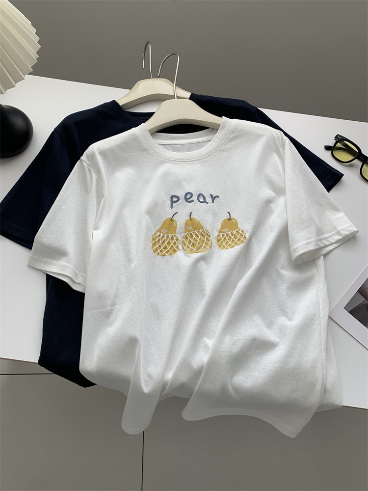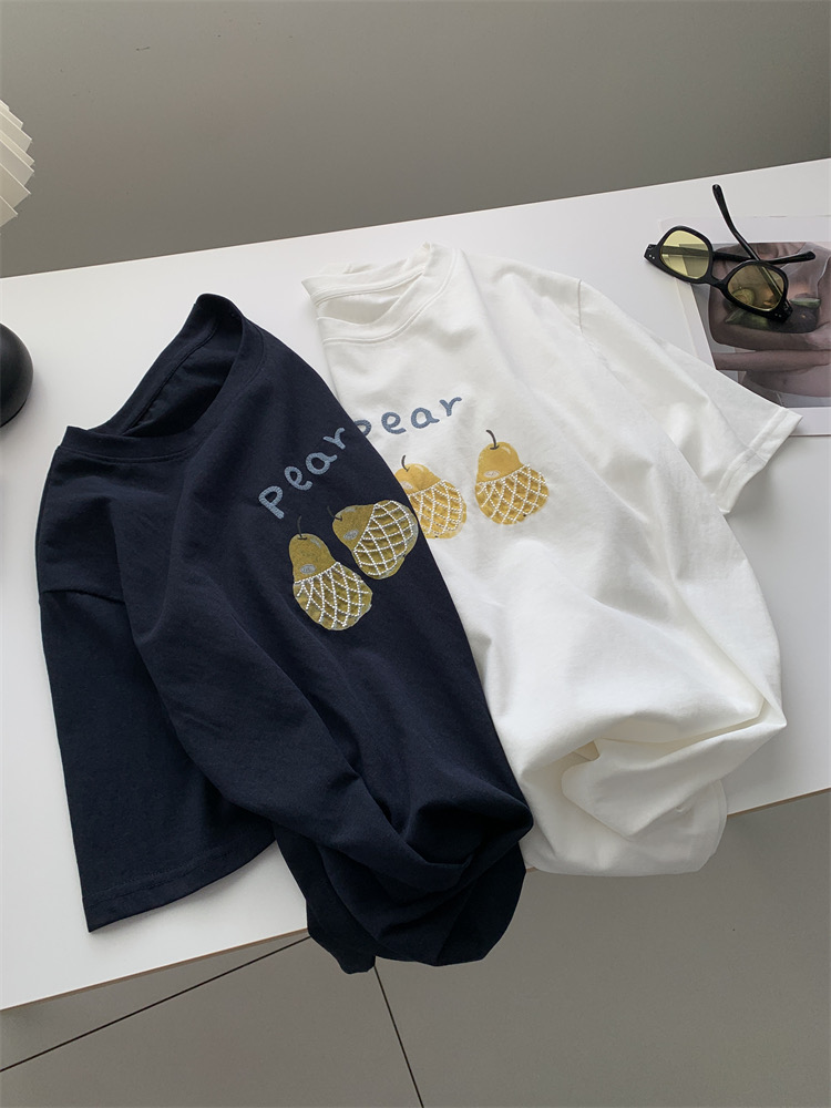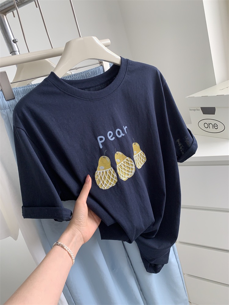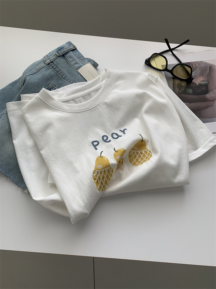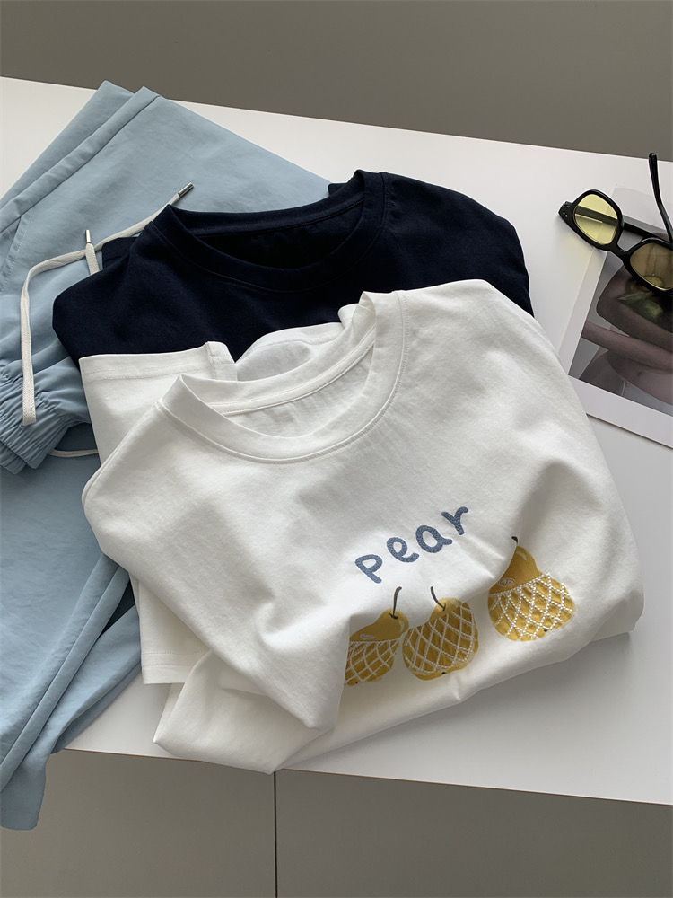 夏日韓系水果印花 慵懶垂感圓領短袖上衣 736