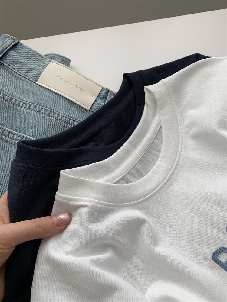 印花短袖T恤 寬鬆顯瘦減齡白色上衣 704