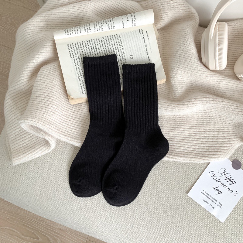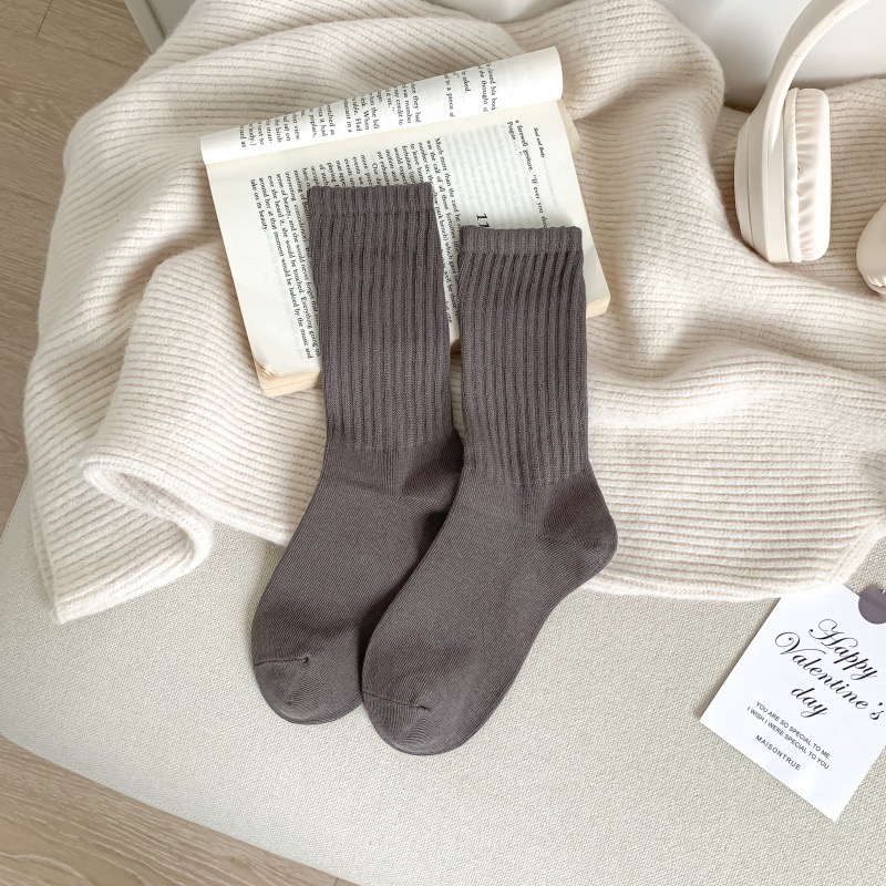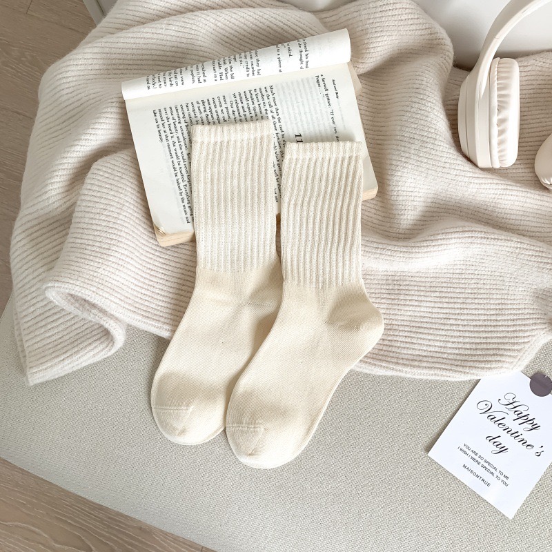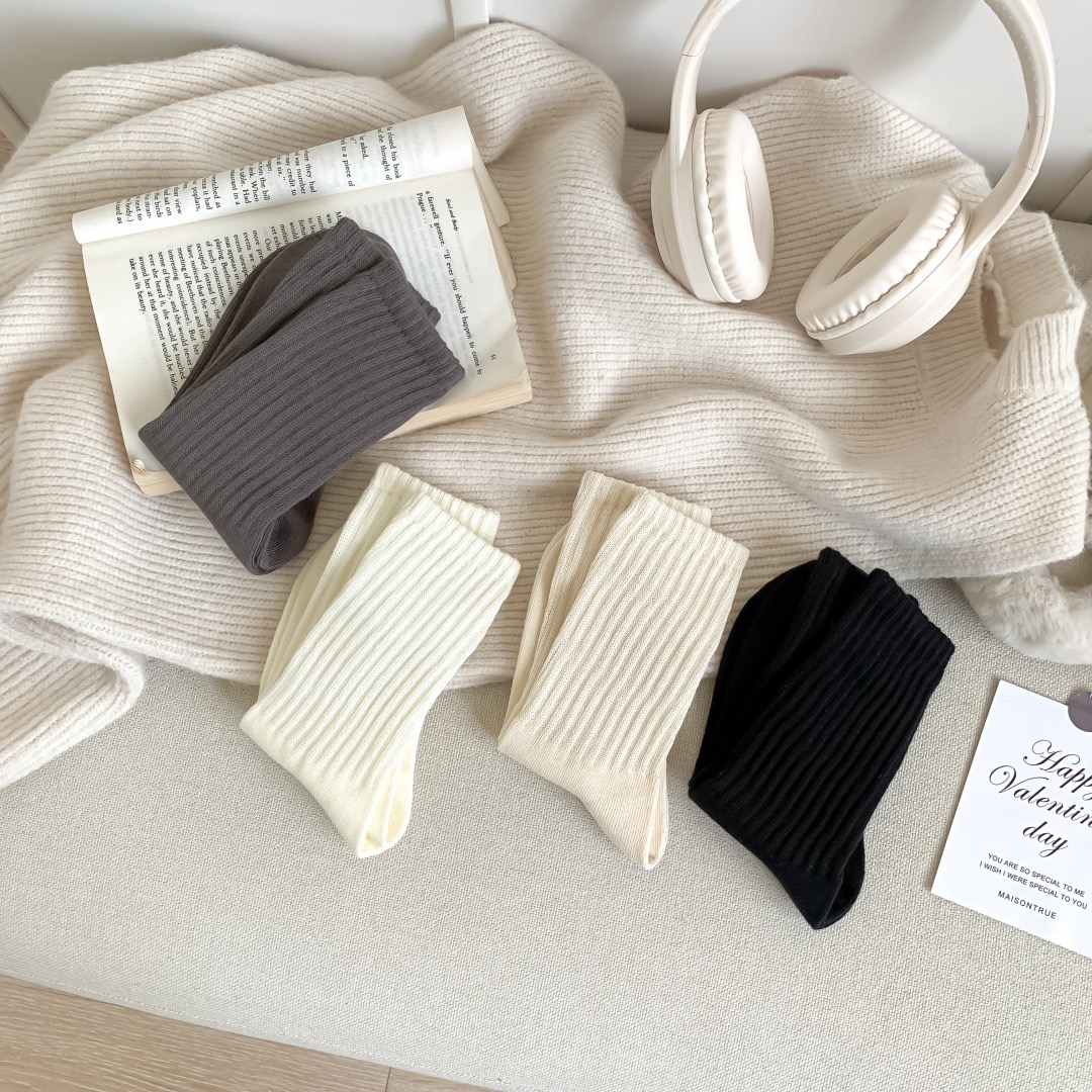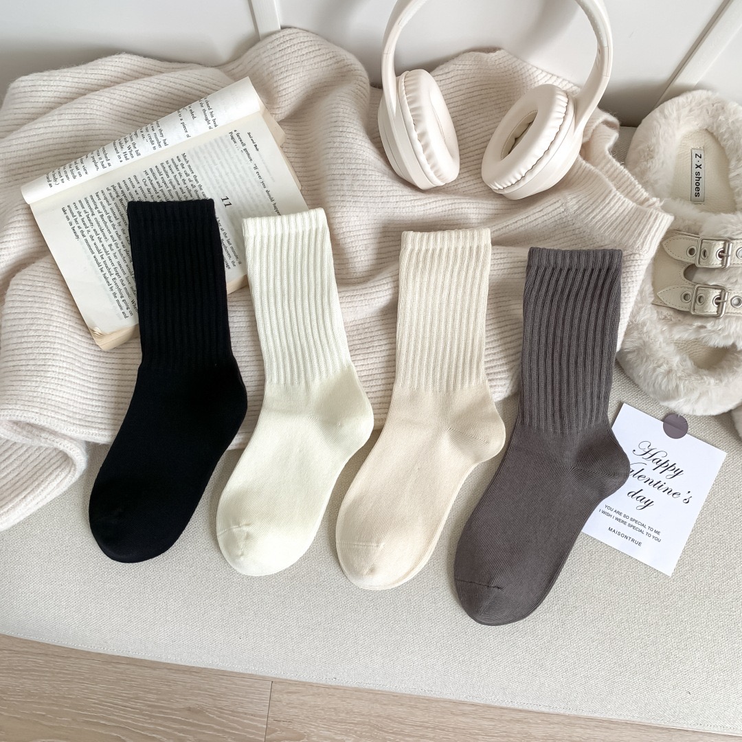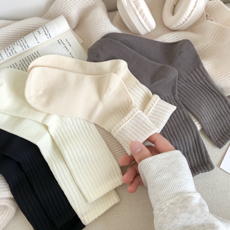 高羅口純色 女士中筒襪 百搭韓版精梳棉襪 55