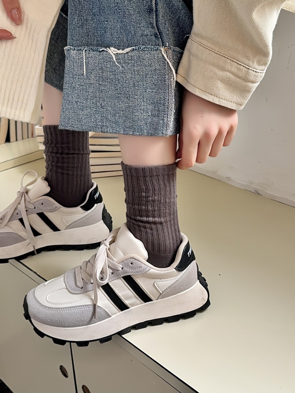 卡通學院風 撞色字母中筒襪 92